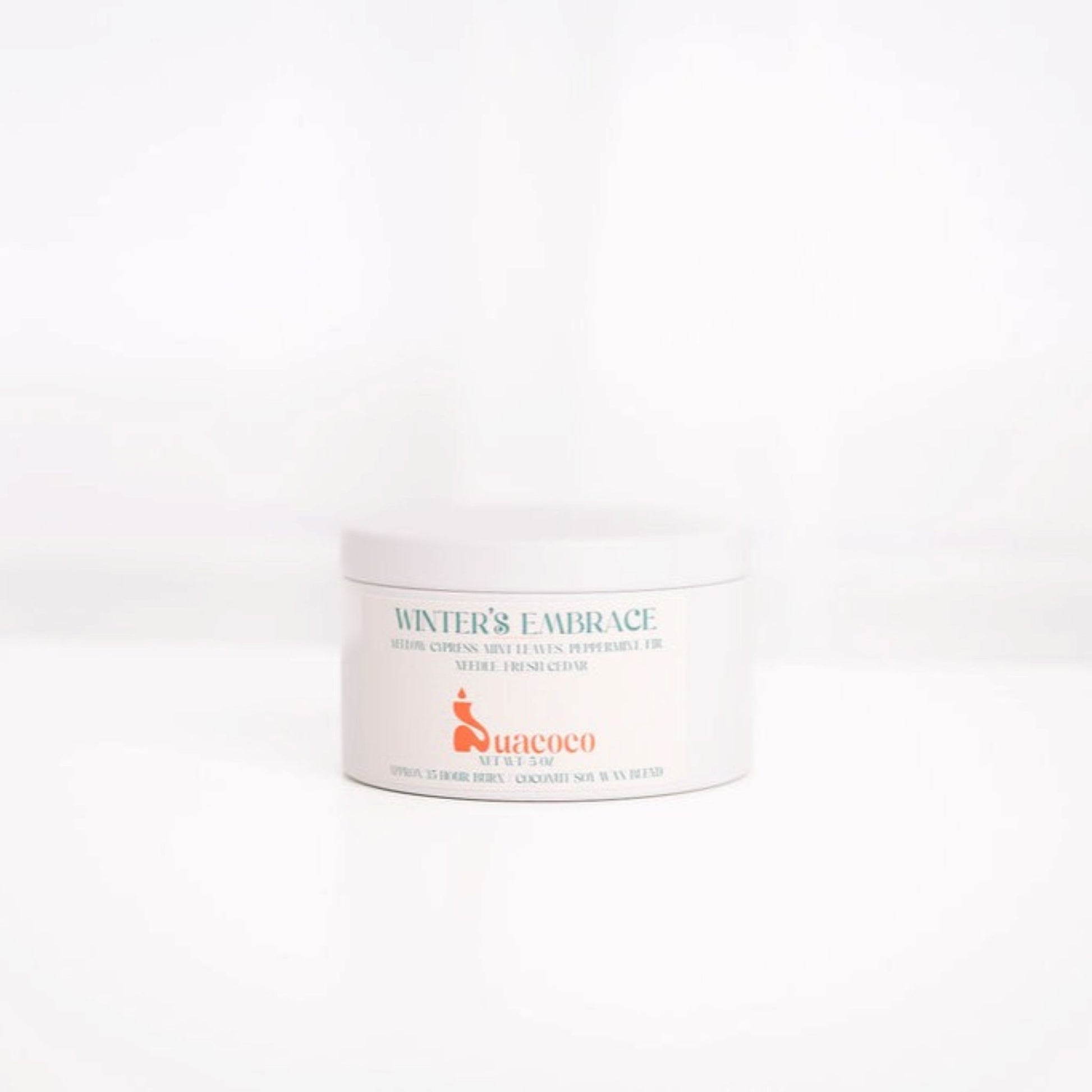 Winter's Embrace refreshes your space with the invigorating crispness of winter air. This candle opens with bright, clean top notes of crisp water and yellow cypress, evoking the cool, winter breeze. The middle notes of crushed mint leaves, bamboo, and rosemary add a fresh, herbal layer that awakens the senses. At the base, the blend of peppermint swirl, fir needle, and fresh cedar provide a comforting, woodsy foundation, creating a harmonious blend of freshness and warmth. This candle is ideal for filling your space with the crisp, clean essence of winter.